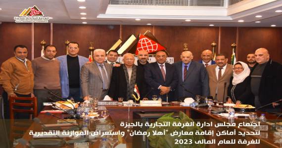 عقد مجلس إدارة الغرفة التجارية بالجيزة اجتماعا اليوم الثلاثاء، برئاسة النائب عادل ناصر رئيس مجلس إدارة الغرفة ونائب رئيس الاتحاد العام بمقر الغرفة التجارية الرئيسى بالجيزة، وذلك لبحث جدول الأعمال الذى يتضمن استعراض الموازنة التقديرية للغرفة للعام المالى 2023 وبحث نتائج مشاركة رئيس الغرفة فى اجتماعات رئيس الوزراء ومحافظ البنك المركزى ووزيرى التموين والصناعة، بالإضافة إلى بحث البدء الفورى لتوصيات الاجتماع الطارئ لمجلس إدارة الاتحاد العام بإقامة معارض السلع الغذائية.