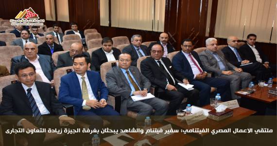 استقبلت الغرفه التجاريه المصريه بالجيزه برئاسةالمهندس أسامه الشاهد وفد فيتنامى رفيع المستوى برئاسة السفير نجوين هوى دونج سفير جمهورية فيتنام لبحث سبل التعاون الاقتصادى والتجارى بين الطرفين ،