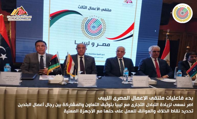 افتتح اللواء احمد راشد محافظ الجيزة بمرافقة النائب عادل ناصر نائب رئيس الاتحاد العام ورئيس مجلس إدارة غرفة الجيزة والسيد محمد الرعيض رئيس اتحاد غرف التجارة والصناعة والزراعة بليبيا والسيد صالح العبيدى رئيس مجلس إدارة غرفة بنغازى للتجارة والصناعة والزراعة ملتقى الأعمال المصرى الليبي تحت عنوان مصر وليبيا نحو تنمية متكاملة و مستدامة وذلك بمشاركة الدكتور صالح خطاب القنصل الليبى بالإسكندرية واللواء حافظ الشيخى مدير مصلحة جمارك بنغازى بليبيا ومحمود الزايدى مدير مركز الرقابة على الأغذية ببنغازى وحضور أعضاء مجالس إدارات غرف الجيزة وبنغازى و الغرفة الاقتصادية المصرية الليبية المشتركة