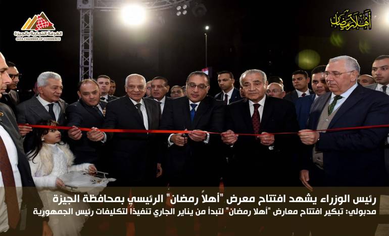 أمين عام اتحاد الغرف التجارية: توفير جميع السلع الأساسية في أكثر من 151 منفذا بـ 18 محافظة ويحظر إعادة بيعها من خلال المحال التجارية خطوة الإفراجات الجمركية شملت كميات كبيرة من الأغذية وبدأت آثارها بانخفاض أسعار الجملة للعديد من السلع واستقرار أسعار التجزئة شهد الدكتور مصطفى مدبولي، رئيس مجلس الوزراء، مساء اليوم، افتتاح معرض "أهلا رمضان" الرئيسي بمحافظة الجيزة، بحضور الدكتور على المصيلحي، وزير التموين والتجارة الداخلية، والسيد/ السيد القصير، وزير الزراعة واستصلاح الأراضي، والمهندس أحمد سمير، وزير التجارة والصناعة، واللواء/ هشام آمنة، وزير التنمية المحلية، واللواء/ أحمد راشد، محافظ الجيزة، والدكتور علاء عز، أمين عام اتحاد الغرف التجارية، وعدد من نواب البرلمان والمسئولين.